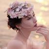 Soft Yarn Headband with Gauze Flowers Faux Pearls Decor Romantic