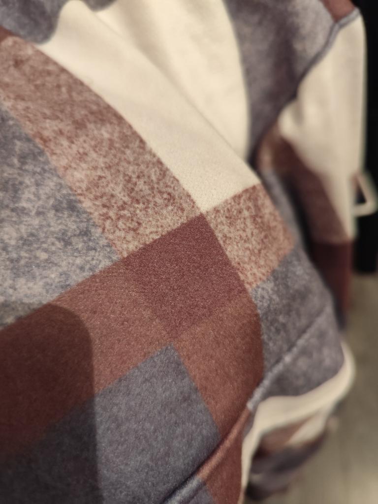 QICED Dámská móda Ležérní podzimní zima kostkované kardigany s dlouhým rukávem POLO s výstřihem