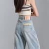 Blue Loose Fit Baggy Jeans, Slant Pocket Washed Wide Legs Jeans, Women's Denim Jeans & Clothing