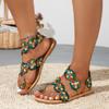 Květinové ploché sandály velké velikosti pro dámský prázdninový styl s elastickým páskem přes prsty a plážové sandály Wish