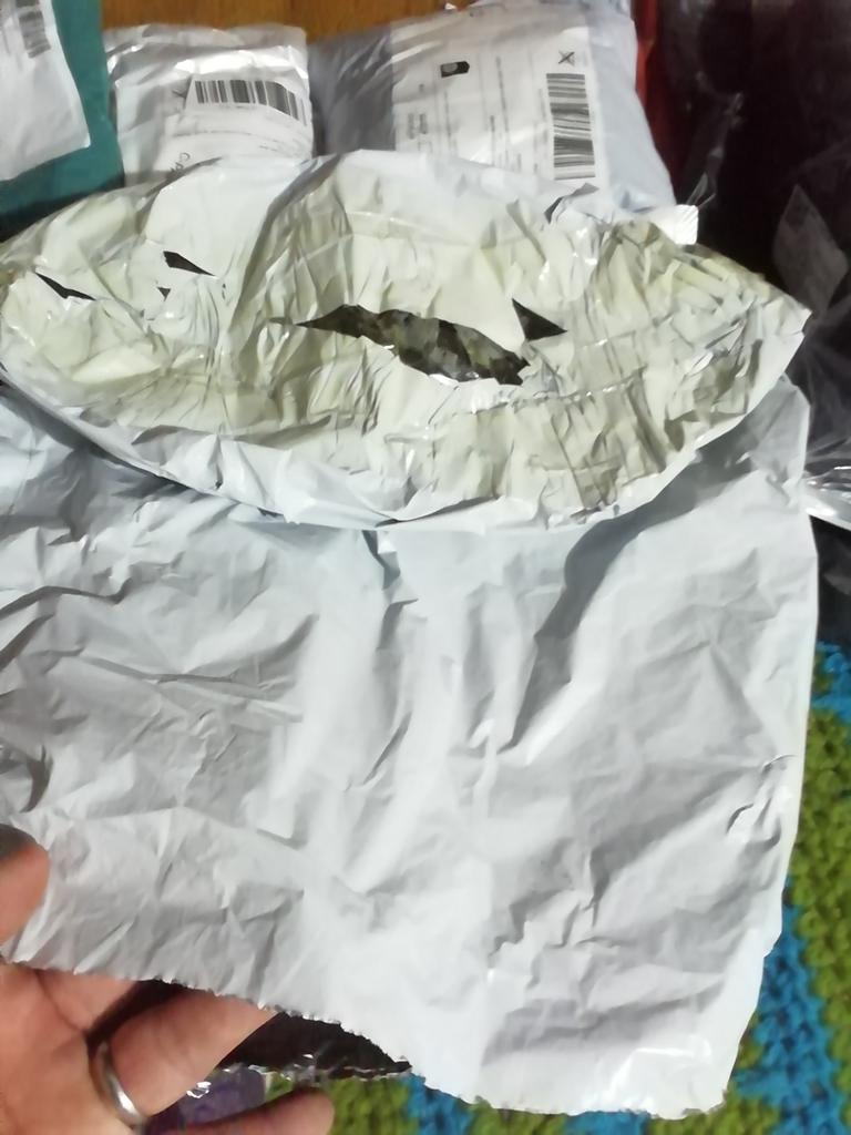 Objednávka nedorazila, balíček byl sběrný, 23 položek, obal byl roztržený a přelepený lepicí páskou. Fotografie byla pořízena vedoucím poštovního oddělení při převzetí.