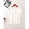 Letní bílé slim fit tričko s krátkým rukávem pro volný čas Dámské slim U-výstřih Kancelářská dáma Tričko Topy Elegantní Jednobarevné Jednoduchá trička Dámské oblečení 24226