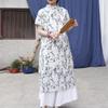 Johnature Dámské letní šaty s květinovým vzorem v čínském stylu s knoflíkem a krátkým rukávem