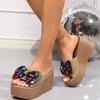 fashion Female Shoes on Sale 2024 New Summer Women's Slippers Butterfly-knot Color Sequins Platform Mid Heel Water Proof Slippers Women