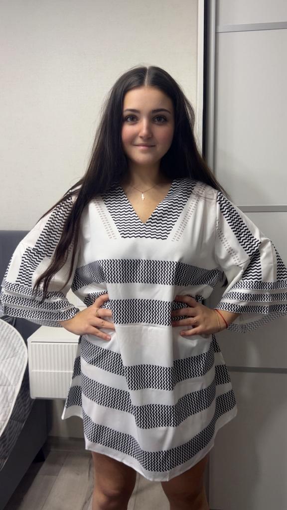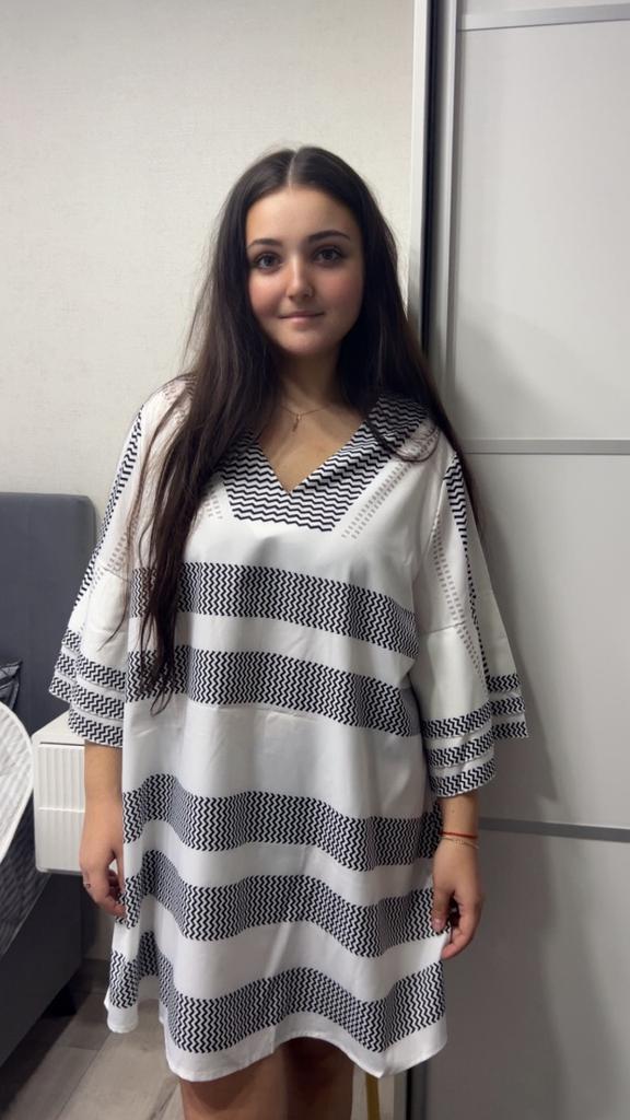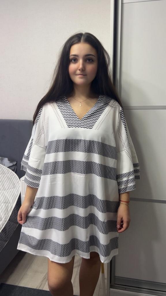 🌺Tunika-šaty. 🌺5 barev na výběr. 🌺Velikostní řada: 1XL-5XL. 🌺Tunika je ušita pečlivě, látka polyester, lehká, volný střih. 🌺Třířadý volán na rukávech. Velikost 1XL bude sedět na velikosti 50+ Pohodlný model, příjemný na těle.