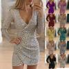 Pozvedněte svůj styl s těmito úžasnými dámskými flitrovými šaty. Tyto šaty jsou ideální pro různé příležitosti, jako jsou večírky, svatby a koktejly, vyzařují šarm a eleganci. Krátká délka a štíhlý design zvýrazní vaši postavu, zatímco výstřih do V a dlouhé rukávy dodají nádech sofistikovanosti.