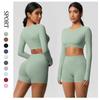 Auroth Bezešvé jógové soupravy Dámské sportovní oblečení s dlouhým rukávem Fitness trička Pletené běžecké kraťasy Tréninkové obleky
