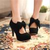 LOSLANDIFEN Nestest Fashion Women High Heels Shoes 11CM Platform Pumps Candy Color Bow Nightclub Flock Wedding Plus Size