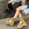 Fashion Women's Platform High-top Sandals Retropeep Toe Belt Buckle Decorate Hollowed Muffin Sole Thick-bottom Roman Shoes Rear Zipper