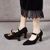 2024 Fashion Women's Shoes Basic Women's High Heels Classics Dress Pumps Women Pointed Toe Buckle Strap Chunky Heel Shoes Female