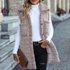 Vesta kardigan bez rukávů s klopami Dámská středně dlouhá plyšová bunda bez rukávů Teplá pohodlná látka Volný ležérní kabát Podzim a zima