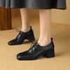 Fashion New Genuine Leather High Heel Shoes Square Toe Woman Dress Black Round Toe Ladies Loafers High Heel Simple Comfortable Shoes