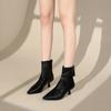 Pointed Toe High Heel Modern Boots Ankle Zip Square Heel Women's Shoes on Sale 2024 Winter Solid Sewing Concise Women's Boots
