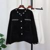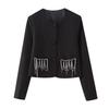 Dámské halenky Černé Těžké korálkování O Krk Halenky s nafouknutými rukávy Blusas Slim Fit Sametová Vintage halenka