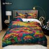 Colorful Duvet Cover Funky Curly Detailed Doodles Tangled Trippy Pyschedelic Botanical Nature Queen King Polyester Qulit Cover