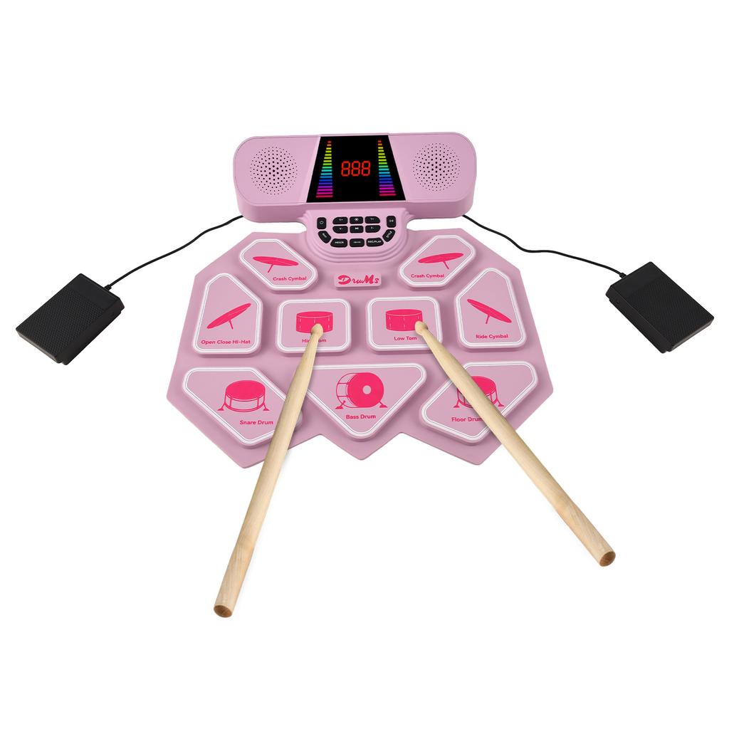 Electronic Drum Set with Dual Speaker Hand Roll Drum Set Ultra Thick 9 Pads Supports BT MIDI
