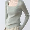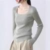 Spring and Summer Women's New Pullover Solid Color Casual Simple Long Sleeve Square Collar Short Slim-fit Sweater