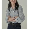 Spring Blue Vertical Striped Shirt Women Long Sleeve Stacking Design Sense Niche Vintage Bottom Shirt Vintage Basic Office Casual Women Shirt