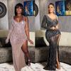 Dámské sexy šaty s výstřihem do V Průhledné vějířovité flitrové šaty móda Elegantní společenská párty večeře