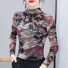 Half Turtleneck Mesh Long-sleeved T-shirt for Women In Winter New Plush Thickened Bottoming Shirt Chinese Style Top