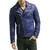 SKINOUTFIT Men's Motorcycle Leather Jacket Genuine Blue Lambskin Café Racer Biker Outerwear