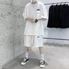 Men's Summer Hong Kong Style Casual Waffle Suit: Loose Fit Printed T-Shirt and Mid-Length Pants.