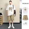 Casual Men's Summer T-Shirt Shorts Two-Piece Set Loose Fit Hong Kong Style Printed Plus Size Sportswear