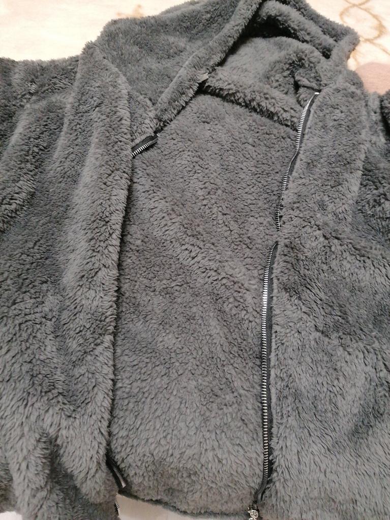 Dámský ztluštěný kardigan s kapucí z polar fleecu - stylový plyšový kabát z jehněčí kůže na podzim a zimu