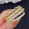 Huitan New Modern Fashion Women’s Rings Gold Color Crystal Cubic Zirconia Sparkling Wedding Band Accessories Luxury Jewelry Gift