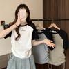 Summer Color Stitching Letter Printed T Shirt for Women Clothes Harajuku casual slim drawstring T-shirt Y2k short Top Streetwear