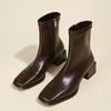 Hnědé silné podpatky francouzské krátké kozačky děti 2024 tenké nové čtvercová špička béžové kotníkové a holé kozačky středně vysoký podpatek
