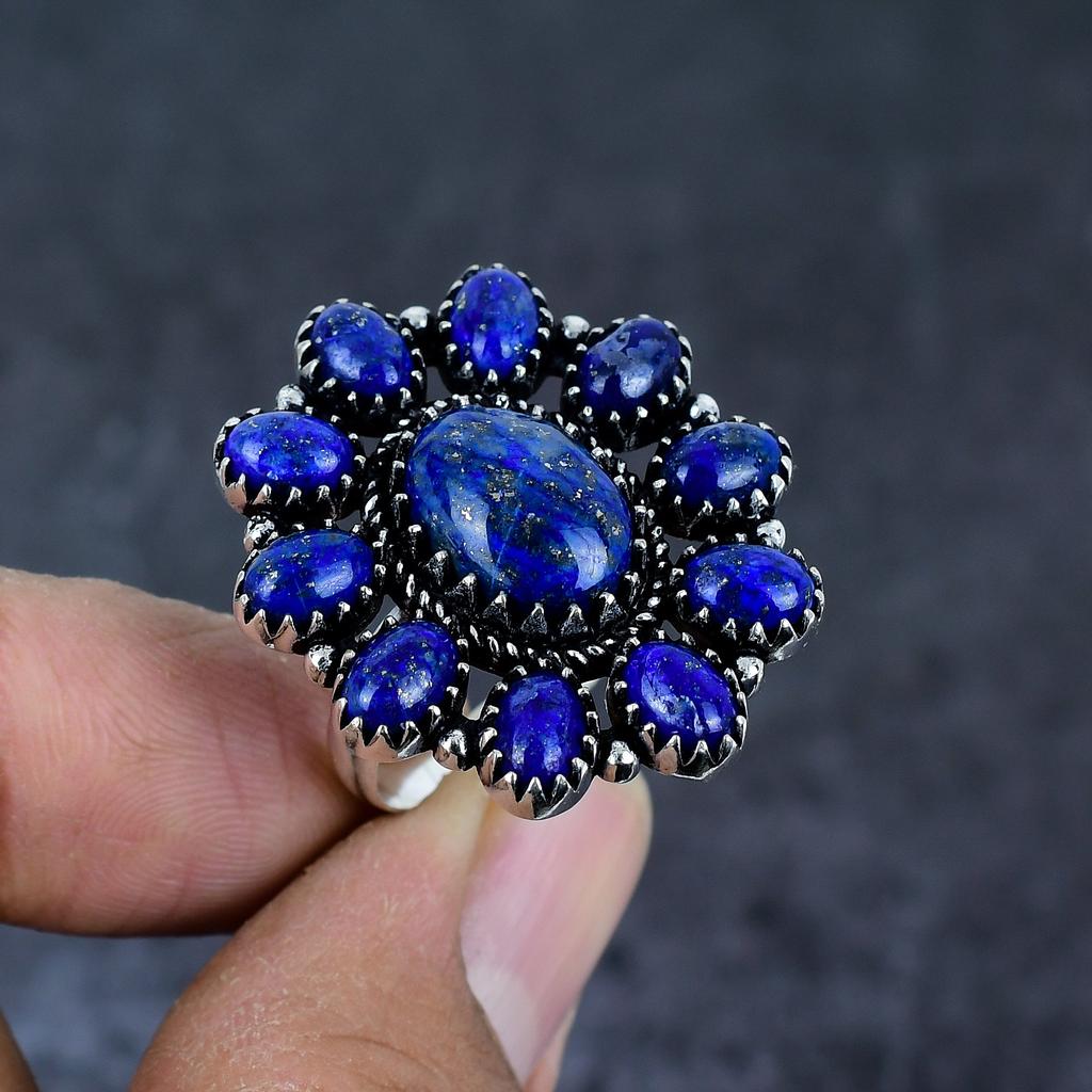 Přírodní Lapis Lazuli Drahokam 925 Sterlingové Stříbro Šperk Prsten Velikost 9.5 m2q80