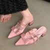 Coarse heel French bow bag head half slippers women's shoes wear 2025 new summer pointed Mary Jane sandals