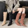 Design metal buckle tall fashion boots autumn 2024 new European and American suede pointed thick heel thin boots long boots