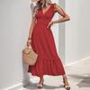 Women Summer Casual Strap Backless Sexy Holiday Beach Solid Color One Piece Dress