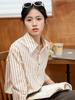 Women's Striped Loose Lapel Shirt - Sea Salt & Sweet Orange