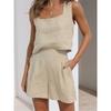 Summer Y2K Shorts Set Sexy Khaki Strapless Top High Waisted Wide Leg Shorts Set for Women's Summer Elegant Casual 2 Piece Sets