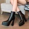 The girl group has the same thick-soled thick-heeled short boots in 2024 autumn and winter, new small elastic thin boots, patent leather super high he