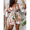 Dámský jarní a letní overal s krátkým rukávem, ležérní V-výstřih, potisk, slim střih, vázání