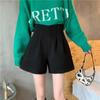 Women's Woolen Wide-Leg Shorts - High Waist, A-Line Black Casual Boots Pants for Spring and Autumn 2024