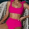Sexy Tie Shoulder High Waist Bikinis Sets Two Pieces Pink Swimsuit Women Padded Swimwear Bandeau Brazilian Biquini Beach Wear