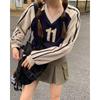 Youthful Girl Age-Defying V-Neck Color Block Sweatshirt - Spring/Autumn Fashion Top