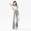 Experience a blend of retro charm and modern style with these slim-fit, micro-flared jeans designed for petite women. Perfect for spring and autumn, these jeans feature a high waistline that accentuates your figure while offering a sportive touch. Crafted from quality denim, they provide both durability and a comfortable fit for any casual outing. Whether you're dressing up or down, these jeans are a versatile addition to your wardrobe, capturing the essence of timeless fashion with a contemporary edge.