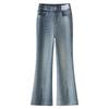 Elevate your spring wardrobe with these slimming, high-waisted, micro-flared jeans designed for the modern woman. Crafted from high-quality denim, they offer both comfort and style with their flattering high waistline. The casual design is enhanced by a chic slit and raw edge detail, giving you an effortlessly trendy look perfect for any casual outing. Ideal for pairing with your favorite tops and shoes, these jeans are a versatile addition to any closet.