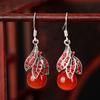 Chinese Classical Cheongsam Hanfu Earrings with Imitation Southern Red Agate & Thai Silver Electroplating