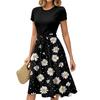 Dámská móda Ležérní pásek Krátký rukáv Kulatý výstřih Geometrický potisk Prošívaný Elegantní temperament Šaty