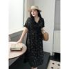 Summer new temperament elegant waist thin skirt floral medium and long dress women