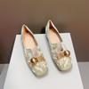 Embroidered Flat Single Shoes Women's Fashion Square Toe Shallow Mouth Metal Buckle Soft Sole Non-Slip Low Top Shoes