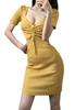 Coco Yuka Sexy Tight Short Sleeve Mini Dress with Ribbed Knit and Simple Bodycon and Neckline Size & Women's V-Neck Ruffles, Style, Off-the-Shoulder,
