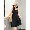 Plus size women clothing [Scotland Island] Chubby Girl Summer Holiday Style Plaid High Waist Meat Covering Loose Vest Dress